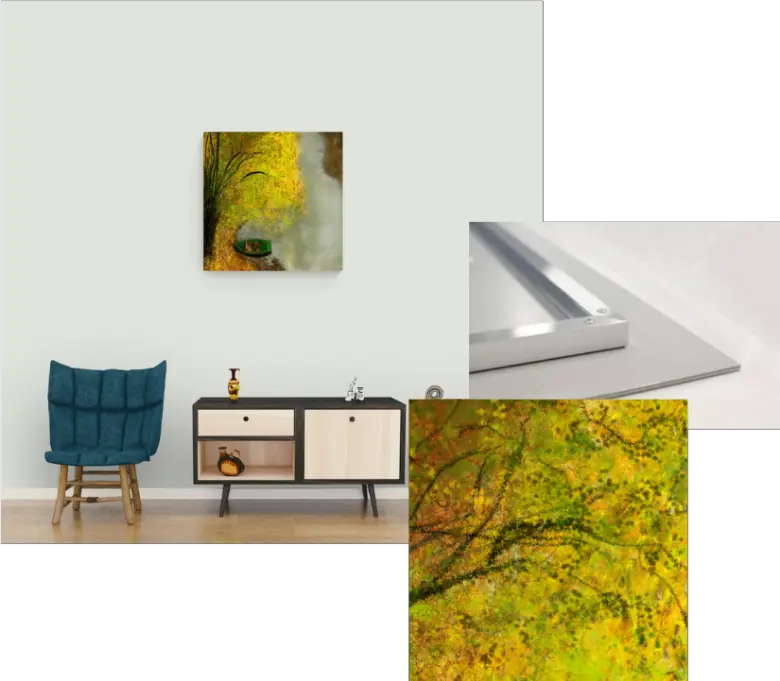 To preserve the true nature of colors, we use natural pigments on Fine Art Paper that we overlay on Dibond.